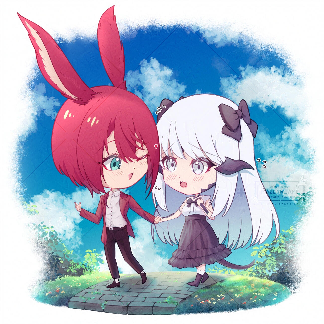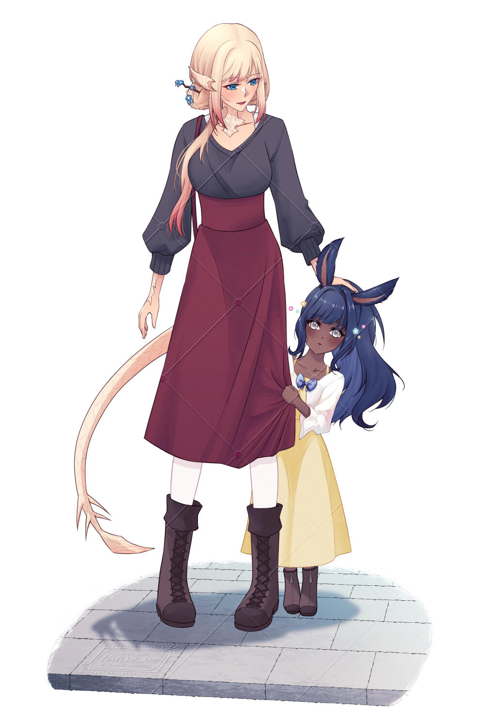 Bonjour ! Je suis Naelyn, une illustratrice basée en France. Mon style est inspiré par les mangas, les animes et les rpg japonais. J'aime dessiner tout ce qui est fantasy et des personnages adorables ! Les commissions personnelles ne sont prises principalement via formulaire sur VGen (L'inscription n'est pas obligatoire).